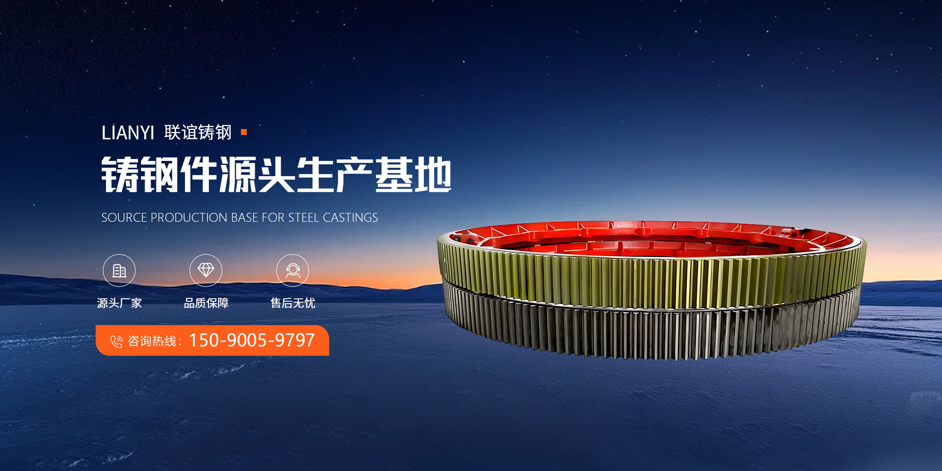 新鄉市聯誼鑄鋼有限公司,位于風景秀麗的蘇門山下和素有“北 國小西湖、中州頤和園”的百泉湖畔,北依太行,東臨107國道和京 廣鐵路,南臨新晉高速三公里交通便利。 公司占地面積2萬平方米,固定資產1500萬元,現有員工180多 人,其中技術管理人員20人。 公司主要從事各種鑄鋼件的開發和生產,年生產能力可達2萬噸。現擁有嚴謹的質量控制措 施、先進的生產設備和檢測設備,如15噸中頻爐2臺(套)、 無錫創想八通道光譜直讀儀,充分 嚴格保證了產品長期、穩定的高質量。公司產品屬“科技型企業”、“質量管理達標企業”并 順利通過了IS09001: 2000國際質量體系認證。 產品有大型輪帶、磨盤體、齒圈、托輪、端蓋、中空軸、橋梁支座、動鄂、上、下橫梁, 活動橫梁,側梁,底座、砧座、機身、立柱、電液錘支架、中大型冶金軋機機架,軸承座,渣 罐等。產品涉及行業有水泥礦山、鍛壓、船舶、冶金、工程機械、路橋、水利、核電等,為國 家重 點裝備制造業提供多品種、多規格的碳鋼、合金鋼鑄鋼件。 我公司深耕鑄造行業三十余載,以匠心與服務贏得信賴。我們始終謙遜傾聽客戶 需求,以真誠態度打磨細節,致力于為每位客戶提供精準解決方案。感恩同行,不負期待